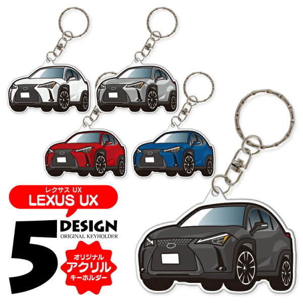父の日や母の日にも… 【デザイン選択】 ・デザインA ・デザインB ・デザインC ・デザインD ・デザインE 【サイズ(目安)】 プレート部/約50mm×29mm 【セット内容】 レクサスUX デフォルメデザインキーホルダー×1 ※受注生産品 ※キーホルダーのデザインやサイズは予告なく変更になる場合がございます。